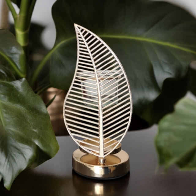 La feuille de palme est l'emblème de la Zenitude. Tout en métal, sa forme élancée, sa couleur dorée, ses lignes symétriques, le tout fait de ce brûleur un objet de décoration au style intemporel.